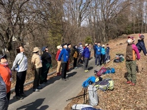 コース内のビューポイントでは、山々のなかでも雪の浅間山が綺麗に見えた。 講師が写真を使いながら山の位置や標高を解説。2日間を終えて、筋肉を意識した歩き方が身に付いたはずだ。 |