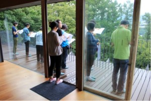 第3回は、天気と地図について学ぶ。はじめに2万5000分の1地形図を使った地図の見方やコンパスの使用方法を学習し、実際に目標物を探してみる。慣れないとなかなか難しい作業だ。 |